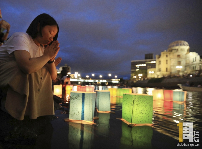 当地时间2019年8月6日,日本广岛市,广岛原子弹爆炸74周年纪念日当天,当地民众在位于中区的元安川(Motoyasugawa River)放纸灯,悼念在爆炸中遇难的人们。