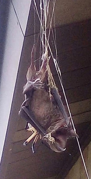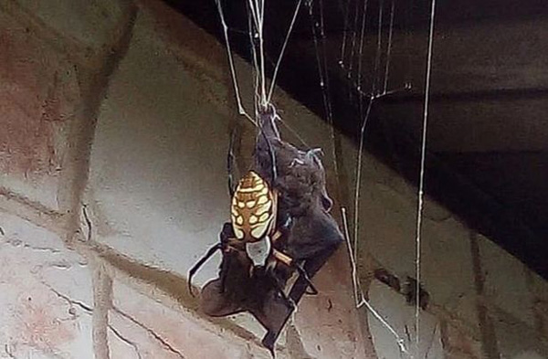 蝙蝠被困蜘蛛网里已死亡 据报道,一周前也发生了类似的事情,澳大利亚一名女子回家时发现一只大型高脚蜘蛛悬挂在客厅的天花板上,画面令人汗毛竖起。( 实习编译:陈星佑 审稿:李珊)