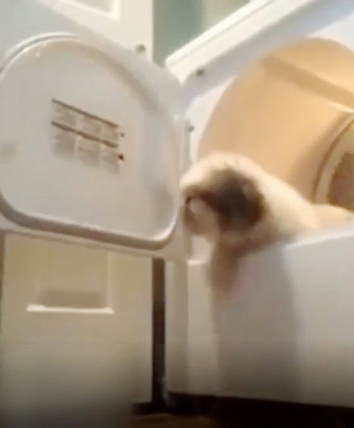 视频显示,这名女孩将一只灰白相间的狮子犬推入烘干机内并启动机器,她一边尖叫一边大笑,显得非常兴奋,小狗则因恐惧发出了呜咽声。烘干机运行过程中,女孩一直激动地鼓掌。大约几秒钟后,她才将烘干机门打开,小狗踉跄地爬了出来。