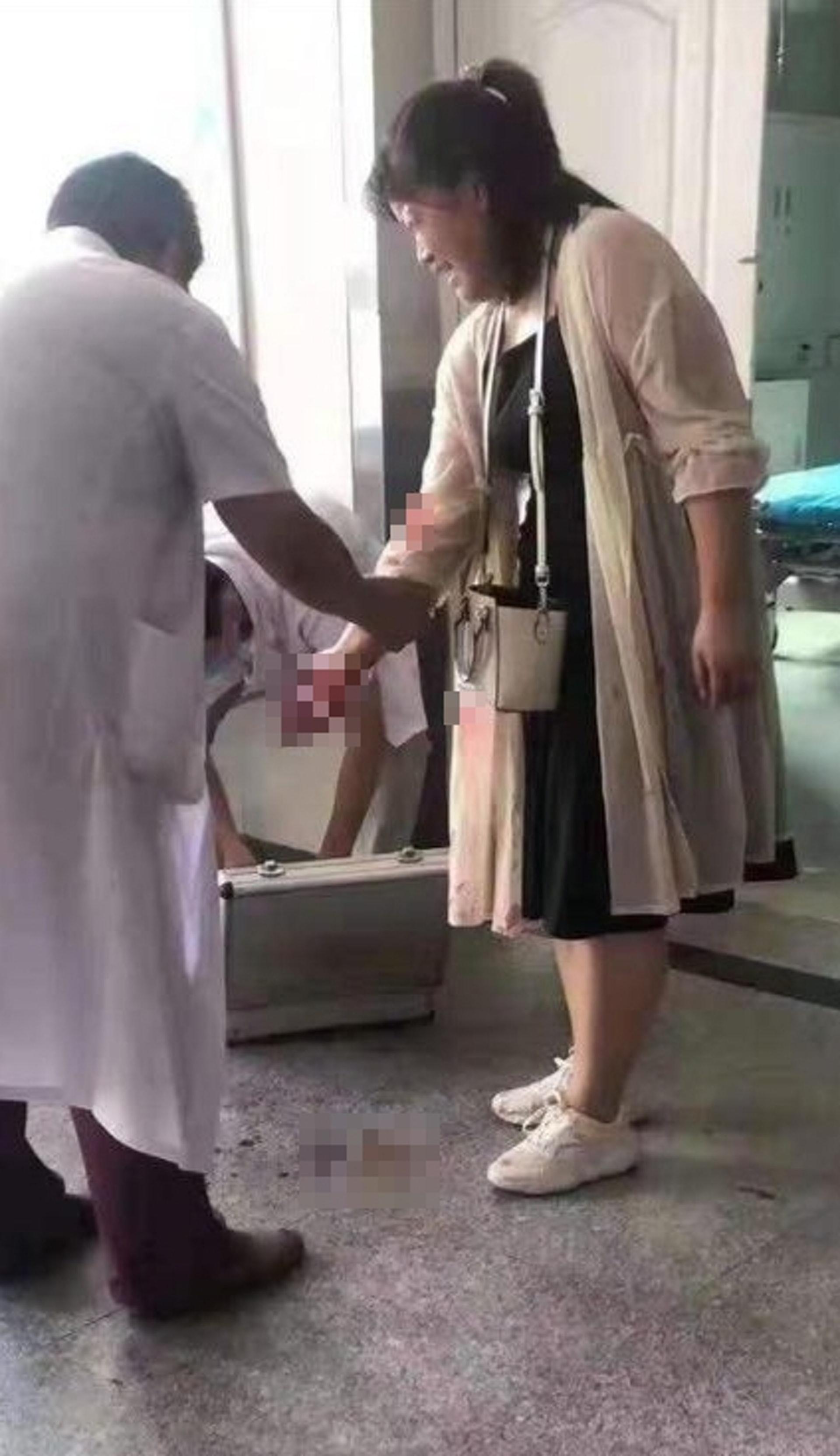 女友事發後滿手鮮血,已遭公安拘捕。(微博圖片)