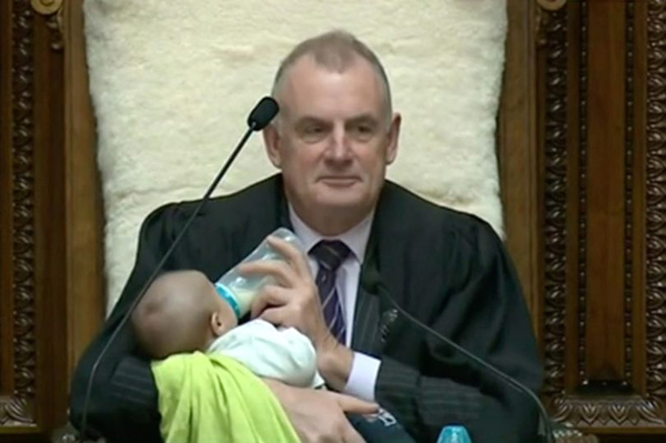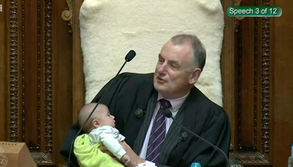 新西兰议会暖心一幕! 议长边主持会议边给婴儿喂奶(视频)
