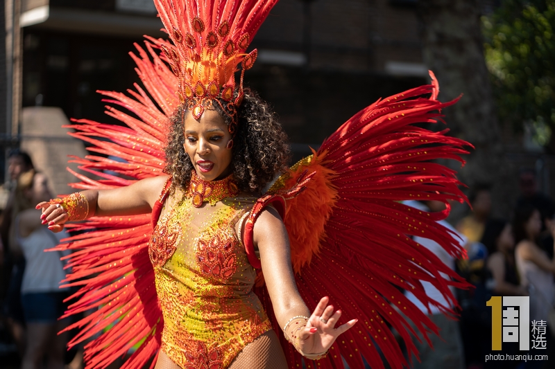 在诺丁山狂欢节的最后一天,人们聚集在一起,向评委展示他们的花车。许多服装是由乐队成员制作的。据估计,为这场数千人观看的活动制作所有服装需要100万小时。