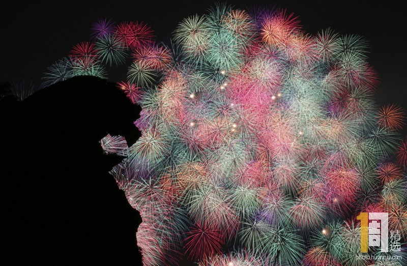 当地时间2019年8月26日,日本三重县熊野市,熊野烟花大会举行,烟花绽放天空,吸引约8万人观看。