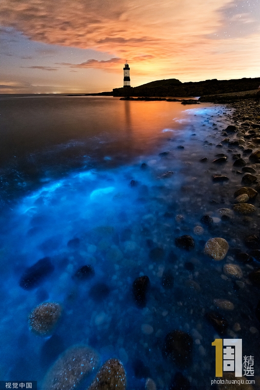 2019年8月28日讯,英国安格尔西岛,37岁的业余摄影师罗伯·阿姆斯伯里凌晨三点在海上划船时,看到了海岸线上发着蓝光的浮游生物群。这一迷人的自然现象被称为“蓝眼泪”。阿姆斯伯里称虽然不是第一次见到这种现象,但这却是自己看过最亮的一次。