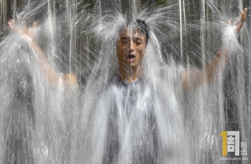 当地时间2019年8月31日,尼泊尔巴克塔普尔 Muhanpokhari,众多尼泊尔民众来到当地瀑布,站在瀑布下冲水享受清凉闲适的周末时光。