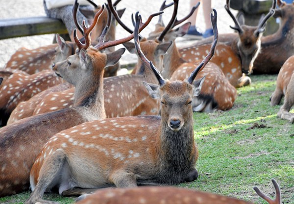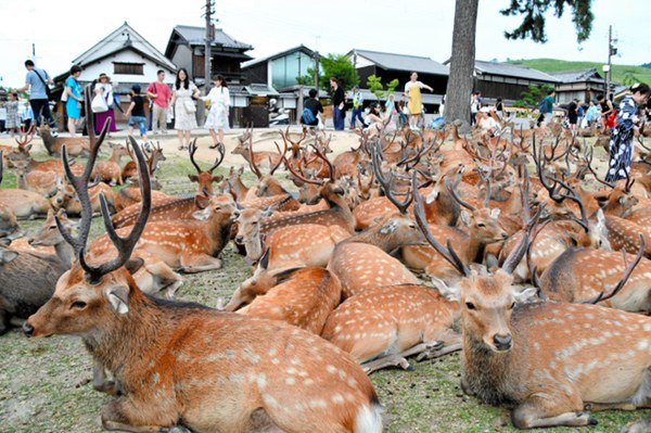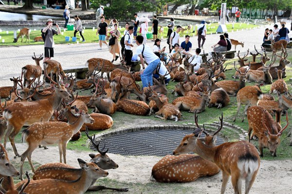 一名从大阪前来奈良旅行的22岁大学生笑道:“还是第一次看到这么多小鹿聚集在一起,数量实在太多了,让人看着有点不舒服,不过还是很可爱。”