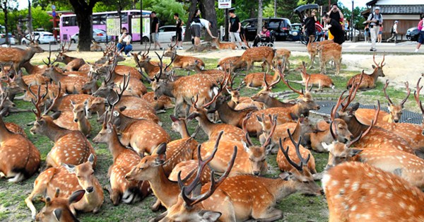 日本奈良百余只小鹿聚集成奇景 原因尚未探明