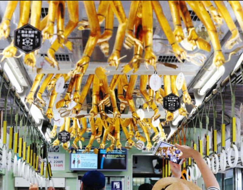 日本京都电车车厢顶出现千手观音“手臂”   乘客惊叹“这是什么!?”