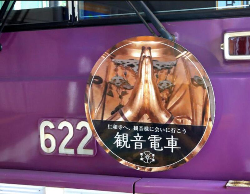 以往,为了宣传仁和寺的樱花,车厢内还装饰过假花、而在盂兰盆期间,车厢内又装饰得很诡异,并有打扮成妖怪的客人上车,简直就是一辆“岚电妖怪电车”。“观音电车”会在11月24日前在岚山本线(四条大宫至岚山)、北野线(帷子辻至北野白梅厅町)运行。而有时候“观音电车”只有上午才出现、或者经常出现,总之要见它还是要看看运气的。