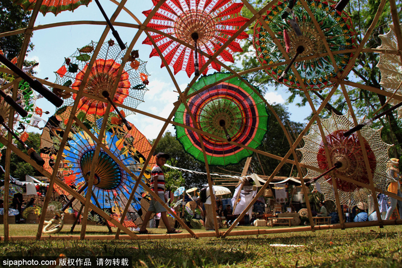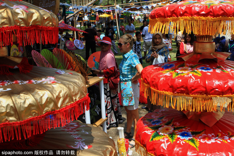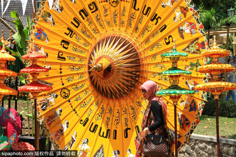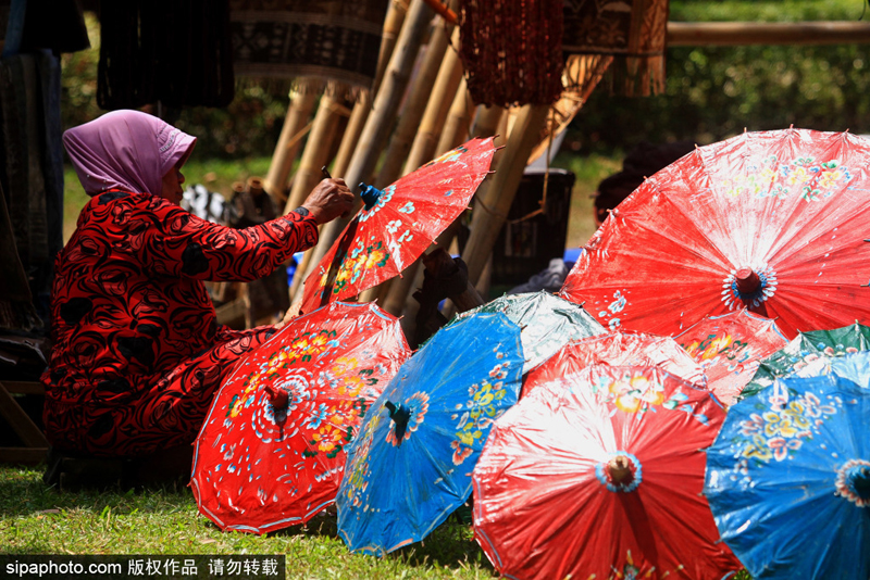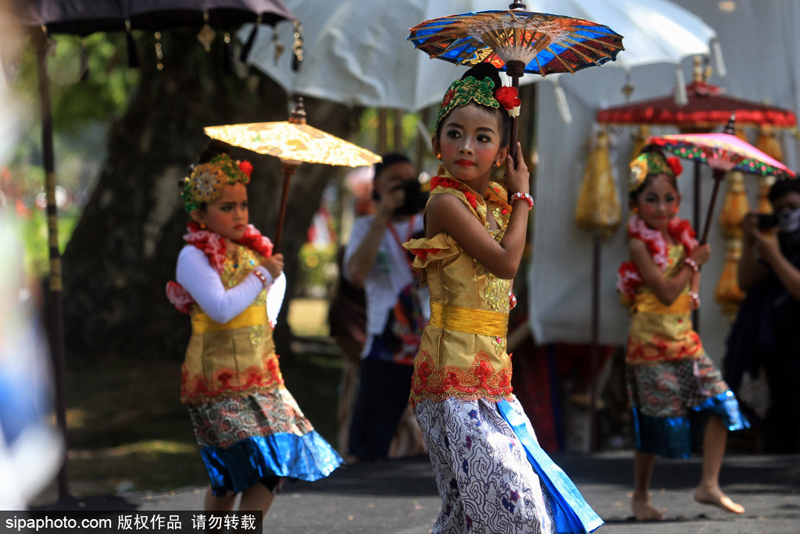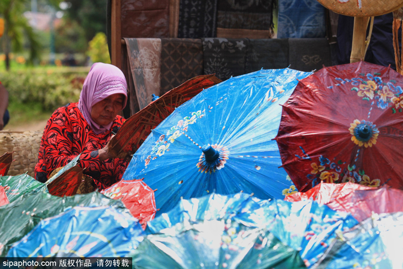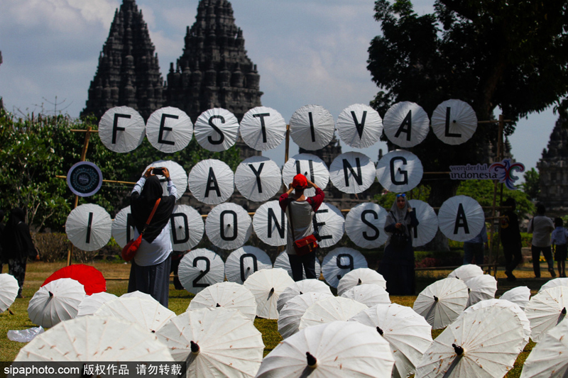 近日,印尼日惹普拉巴南神庙,当地正在举行努桑塔拉雨伞节。
