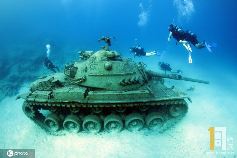 当地时间2019年9月22日,土耳其安塔利亚,潜水者在地中海沿岸的海滨度假胜地潜水,探索被放置在水下20米深处的旧坦克。
