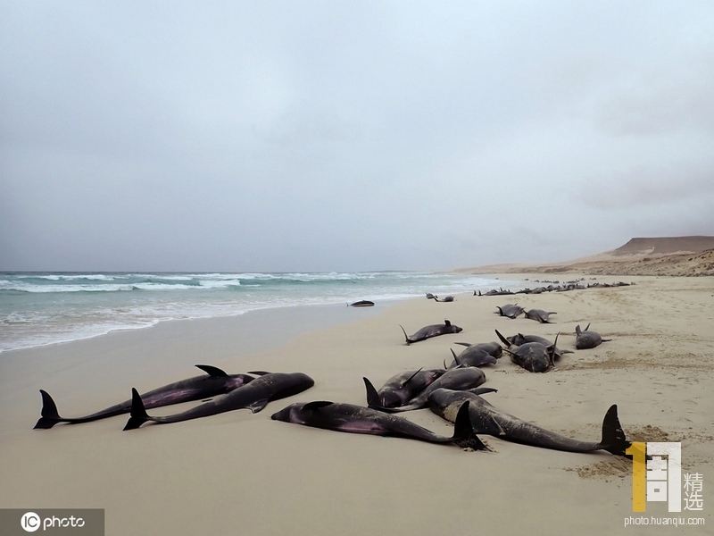 当地时间2019年9月25日,佛得角博阿维斯塔岛,约100只海豚在当地海滩上搁浅。当地Loro Parque公园的工作人员试图将这些海豚送回大海,但没有成功。