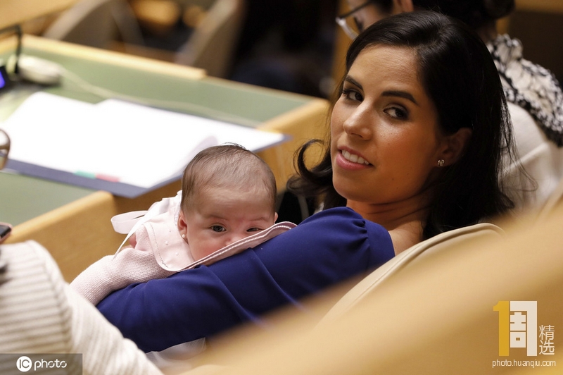 当地时间2019年9月26日,美国纽约,第74届联合国大会持续召开,萨尔瓦多第一夫人Gabriela Rodríguez de Bukele带着宝宝出席会议。