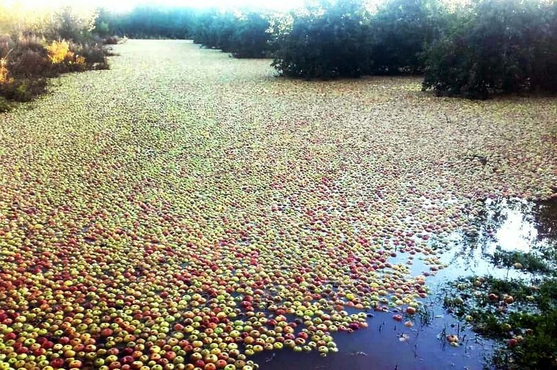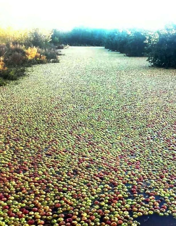 据报道,10月28日下午,一名旁观者拍下了这张匪夷所思的照片,照片上漂浮着的苹果一直延伸至视线所及的尽头,这名不愿透露姓名的男子表示:“喜欢喝苹果酒的人要抓狂了,成吨的水果被冲进了水里。”随后,网友纷纷在脸书上分享这件事情。