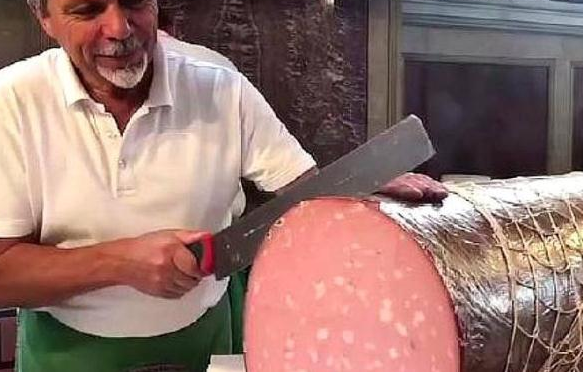 一般餐厅为了赚钱都会在一些受欢迎的菜品上加价,同时也会加量,因为这样就会吸引到顾客,然而这家餐厅一根香肠却能够卖一年。这家餐厅卖的香肠和我们平时见到的是不一样的,他们店里的香肠是超大的,足足有一米多长,并且重量也达到了三四百斤,这种香肠被称为莫塔德拉,足够一家餐厅使用一年。
