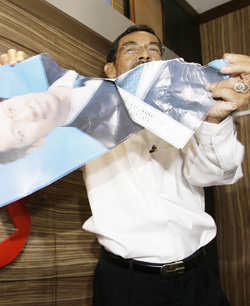 各位槟版的网友帮帮忙,有位外国朋友回来,看到许子根的新闻,就很生气的问我为什么马来人将许子根的照片撕成一半。。