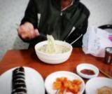点餐鲁~ shit ! 我的宝典没有带出来 (心想在附近吃,不用麻烦) 泊变...随便叫"kimbap yi gor"...再和阿朱玛指指笃笃,随便说ok 都不懂点了什么 Heng啊, 来的是美味的面汤..小辣 (LG 说的, 忠于清淡的我..什么都是很辣) LG 突然想起"辣炒年糕" ... '阿朱玛,Ddeok-bok-ki yigor' 当阿朱玛把辣炒年糕放在我们眼前时... 很大盘咧..红红的,真的狠辣狠辣 大盘+ 辣辣= 吃不完= 浪费 (老天啊,请你原谅我为了能继续行程,没硬吞下 ) 韩国点餐要注意。。他们的份量可是惊人的.. 和价钱程正比哦 |