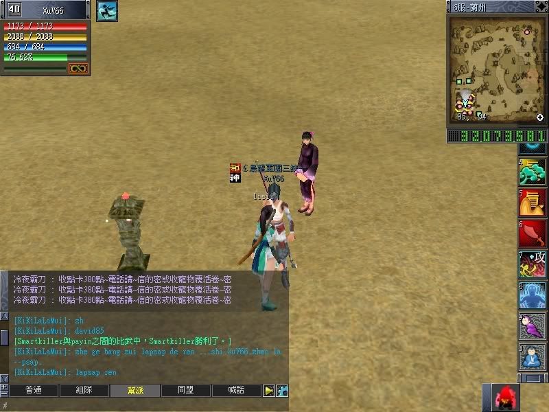 今天上线,看见了那个kikilalamui,好好跟他打招呼。。。