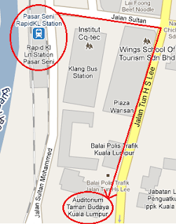 How to go Auditorium Taman Budaya from Pasar Seni LRT station( Kelana Jaya line ) :