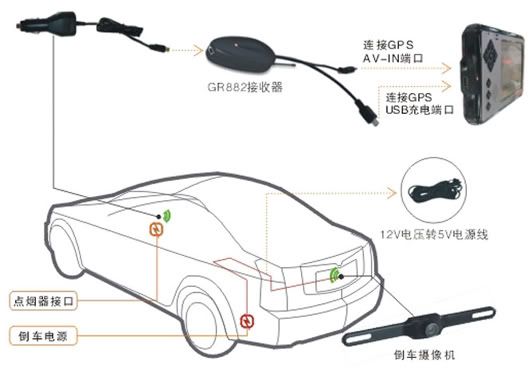 摄像头参数: * 感光元件: 采用美国OV 1/3-inch color CMOS 芯片, 彩色图象,图像高清晰,清晰度与CCD芯片差不多。 6.8G防震级别、IP66防水级别* 红外夜视,晚上自动打开红外摄像,夜间有效可视距离可达10米 * 像素: 628 x 582 * 分辨率: 420 TV 线 * 最低照度: 0.3 lux * 信号无障碍传输距离: 100米 *带参考线摄像头视频信号可以产生“梯”字形车宽警示线和三条障碍物与车尾距离的安全线,就像一个模拟车尾,倒车时司机以“模拟车尾”为参考,线内危险,线外安全很容易判断出障碍物与汽车的位置和距离,克服了普通可视倒车系统显示的平面后视图像的变化比例大,倒车没参考,车与障碍物之间的位置和距离感不强的缺点 * 电源: DC 12V / 200mA * 发射频率:2414MHZ * 工作温度:-20℃~ +60℃ * 尺寸: 长25厘米、最宽处3.2厘米 * 170度对角视角、90度垂直视角,防水防尘防雾、超宽视角、画面更加宽广 * 适合各种车型:红色电源线接倒车灯正极,黑色接倒车灯负极 接收器参数: * 电源: DC 5V / 150mA * 标准车充电源接口:迷你USB电源接口 * 工作温度:-20℃~ +60℃ * 接收灵敏度:-93dbm * 视频带宽:8.0MHZ * 接受频率调谐方式:内置频率锁相环 * 信号解调方式:宽带频率解调 * 射频转入阻抗:75OHM * AV输出:复合视频