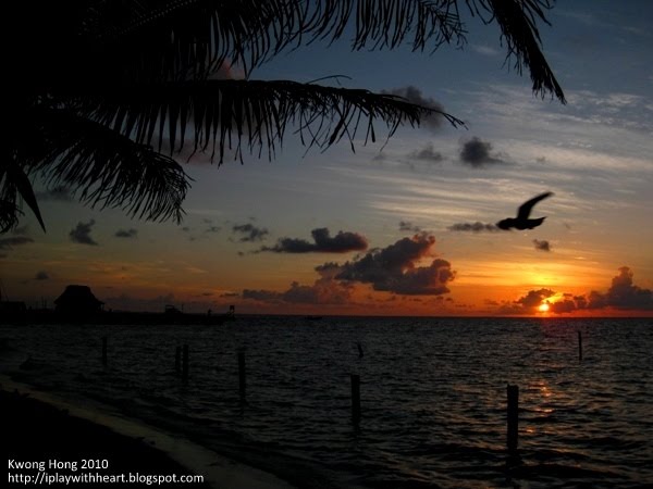 我们乘坐的尾班船到达Ambregris Caye时已是日落时分。没有旅游指南的我们在马路上随便乱闯找住宿。幸好这岛本身就很小,就那么两条街道。我们问了几间,不是没房就是太贵。找到一间Ruby’s Beachfront,价格不错就住了下来。后来才知道原来这间旅馆也列在Lonely Planet里。吃了晚餐后随意逛了一会,其实这岛的夜生活相当精彩,可是我和吉奥瓦尼没什么兴趣。而且当天周六我还工作了一天非常疲累。