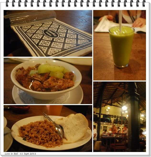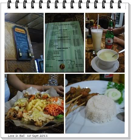 不知不觉,又到七点啦。。。因为早上找不到 Bamboo Corner,司机载到我们到Kuta,就带我们到Bamboo Corner。。。 Bamboo Corner 的食物是很便宜,不过,食物太油腻,味精太多。。。 不过,果汁满好喝的。。。 很多 Cari 的人介绍 Seafood Basket, 我本人的意见是-油腻,不新鲜,不好吃。。。