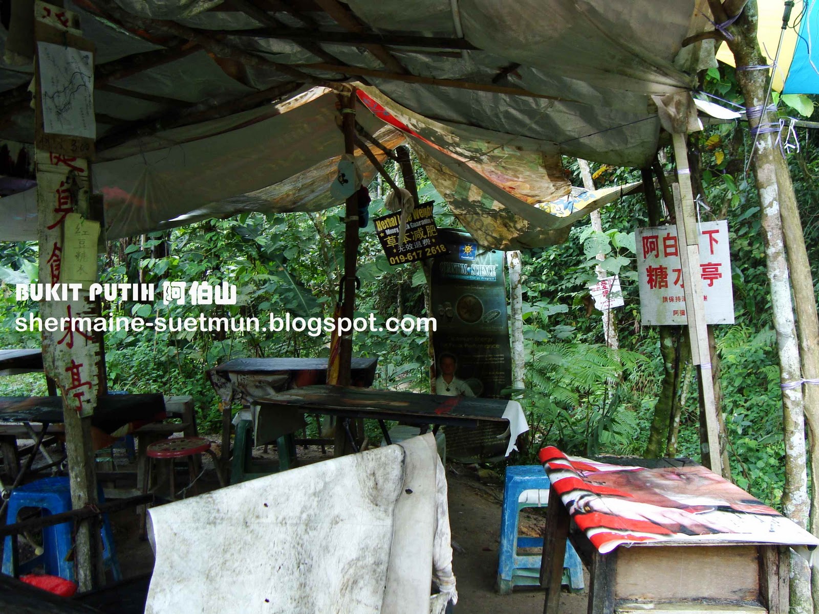 走到第3个山顶我们就到了所谓的第3 站,心想我们要去第5站的瀑布难道就真的要上上下下5次才到??我会死掉~~~~原来到第3站之后到第5站的路就比较平,不需要再上很斜的山路了,多数住这里附近的AH PEK 们都到这里第3站就结束了,不会继续再上,这里有很多的椅子,我们在这里休息然后问问路如何去瀑布~~~