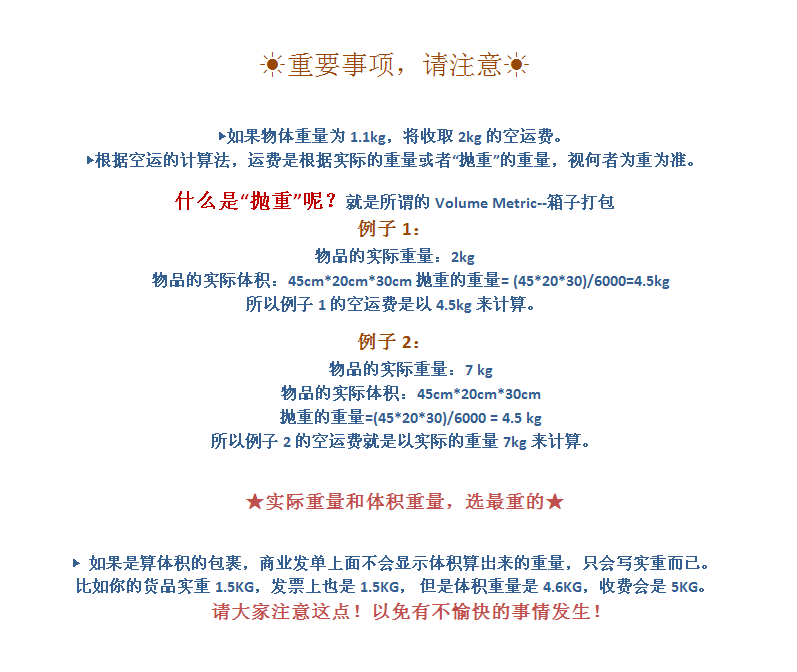10KG 以上,RM13.00/KG计算,不收附加敏感费。