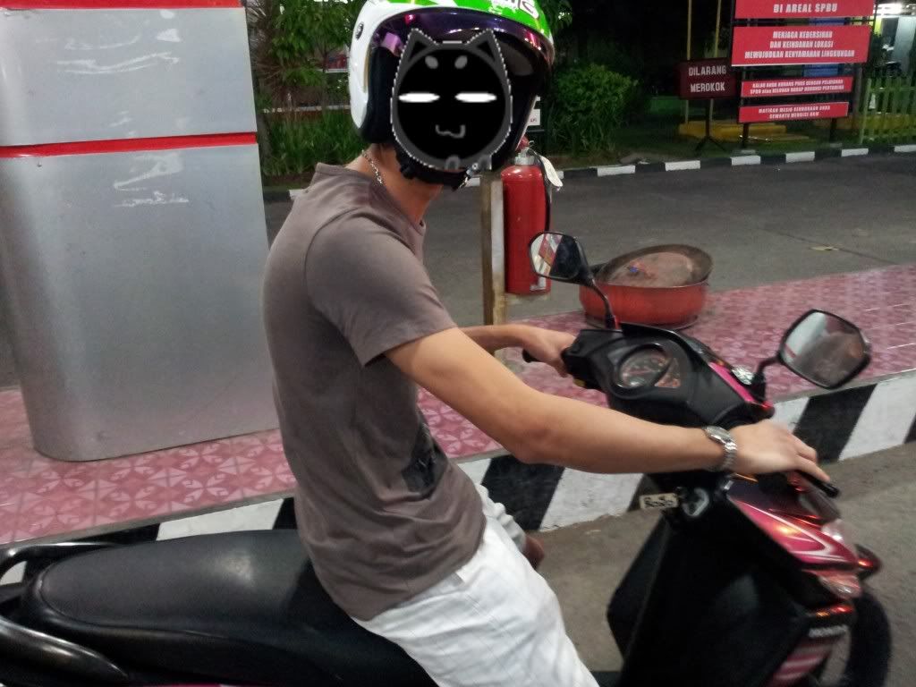 我回房间拿头盔,他就跟uncle拿摩托...uncle看到头盔问我们买多少钱,一顶rp180,000,但uncle说他买给他儿子才rp135,000,又再被砍菜头了 uncle吩咐我们用完把摩托放在哪和key交给tanaya后,我们就出发啦~ 第一个先去的地方就是去打油,bali的油站似乎蛮少的,而且才一种brand...幸亏这几天有注意到油站在哪,所以会去