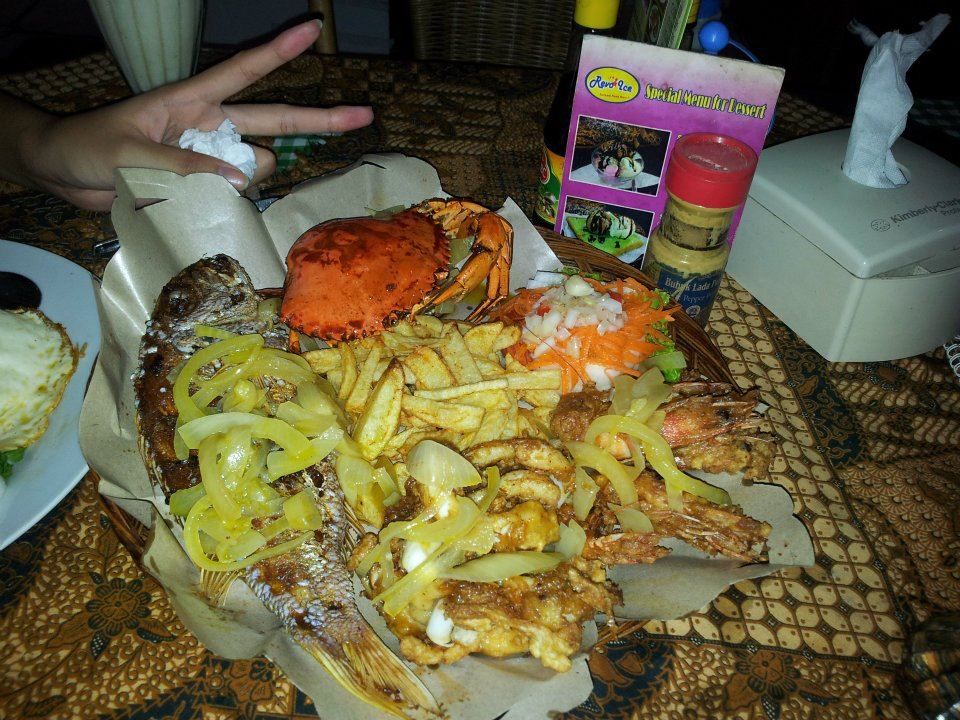 seafood bucket,知道他很喜欢吃海鲜就介绍这给他,没想到有点失望咯,螃蟹没什么肉,sotong,鱼炸得有点干,虾不新鲜.gif)