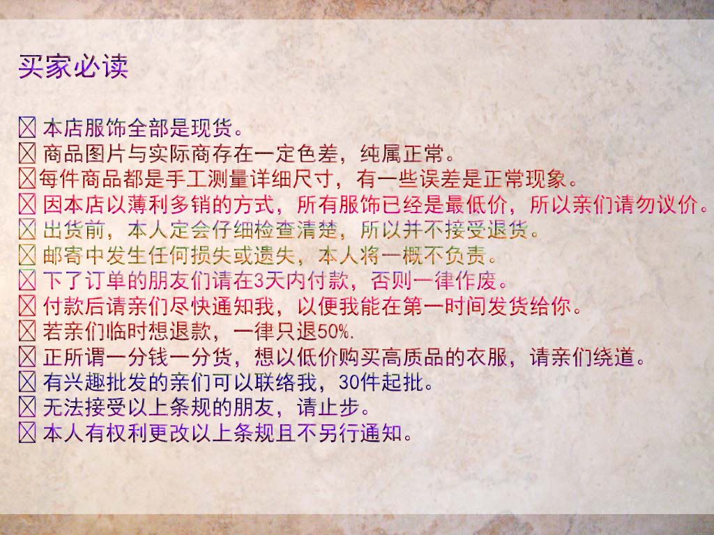 想购买以下衣服的亲们只需要记下衣服的编号,pm或sms给我就可以了!^o^