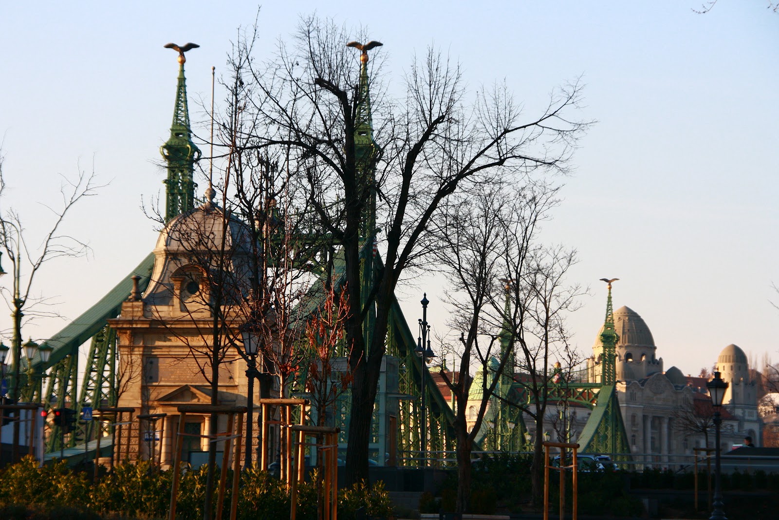清晨的布达佩斯仿佛还在醒睡当中,大街上没有拥挤的人潮,也不见猛按车笛的车龙,一切看来是如此地恬静安祥。我们沿着小路途经犹太教堂,越过了广阔的bajesy-Zsilinszky ut.大道来到了Saint Stephen's Basilica。著名的Saint Stephen's Basilica就位于大道一旁,其96公尺高的教堂圆顶在蔚蓝的天空映衬下显得分外夺目,轮廓分明。站在教堂前方广阔无人的广场中心,眼前这座新古典主义建筑风格的教堂显得宏伟壮观,不仅让人产生渺小的感觉。