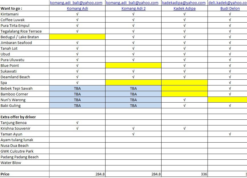 我已经买了12月去巴厘岛的机票!5天4夜!司机也找好了,是dewa marco! 请问有谁跟过他?可以给点意见吗?