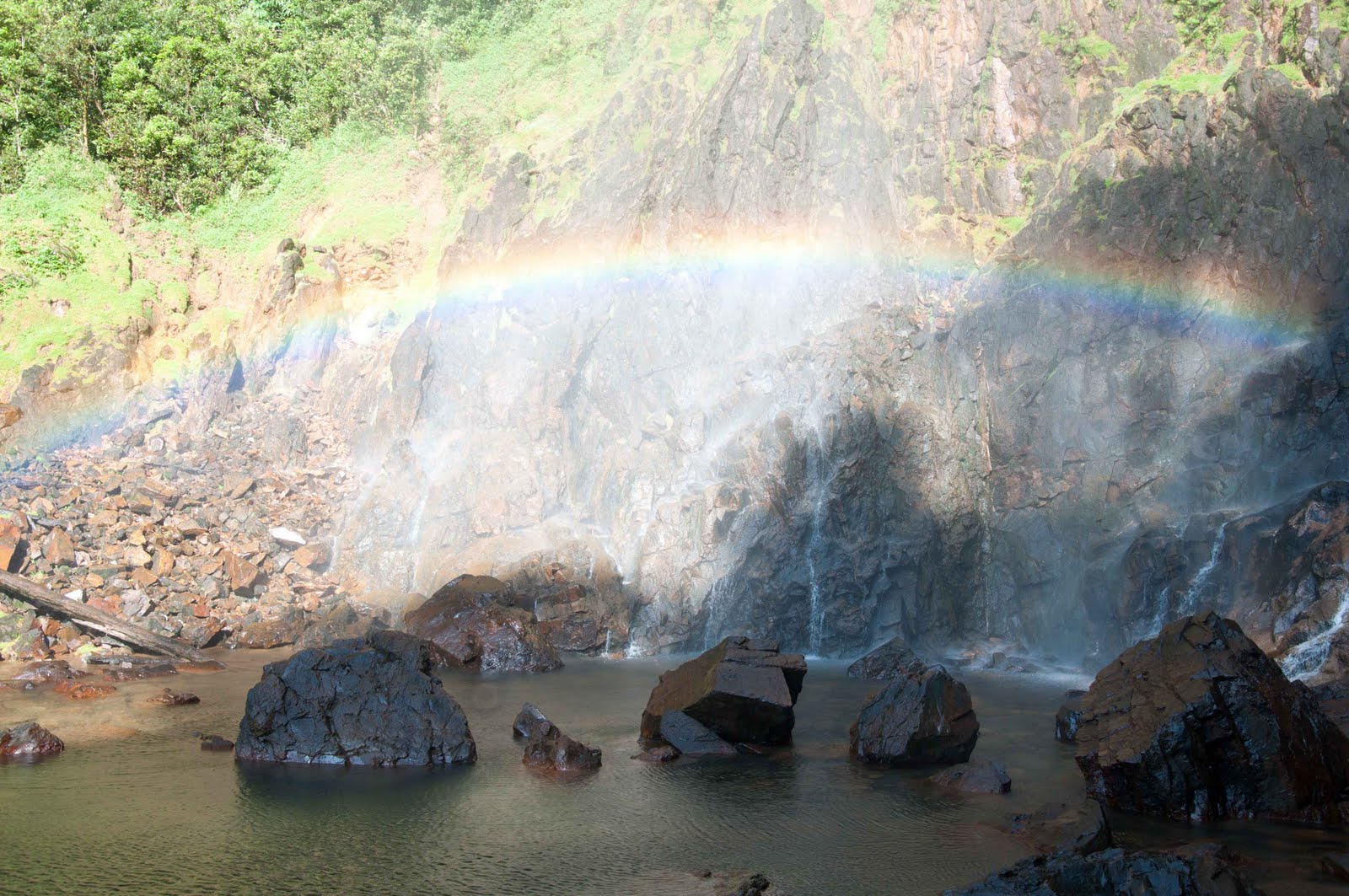这里就是终点啦。。。这个瀑布很高很高,但是水量并不多,所以河水在半空中就散开来,很壮观。。。不同的角度观看彩虹,也不一样哦。。。有的高,有的矮,唯一不变的是,彩虹的颜色很显眼,很鲜艳。。。推荐一定要到瀑布下看彩虹,你会看到“圆”型的彩虹哦!!!是360度的!!!