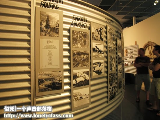 大约绕了整个市中心后,司机带我们来到了这里的美术及博物馆。大家都应该熟悉美术馆不允许拍照的规矩吧?所以,我无法向大家展示那些土族的美术作品。不过,博物馆为了纪念Cyclone Tracy 灭城大灾难的发生而设立一个纪念馆,里头展示了许多当年遭气旋袭击后的惨况, 同时也将一段非常珍贵的气旋袭击的录音片段播放,让公众能感受一下当时的情况如何。