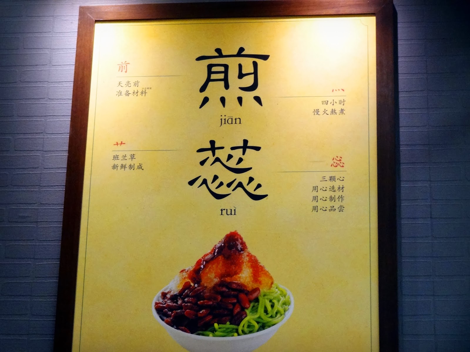 这就是招牌的潮州煎蕊,是由刨冰、班兰粉条、椰奶、红豆和椰糖组成的冰品。整体上不会太甜,椰奶的味道偏重但是少了椰糖的香浓。我个人还是比较偏爱椰糖较重的马六甲娘惹煎蕊。
