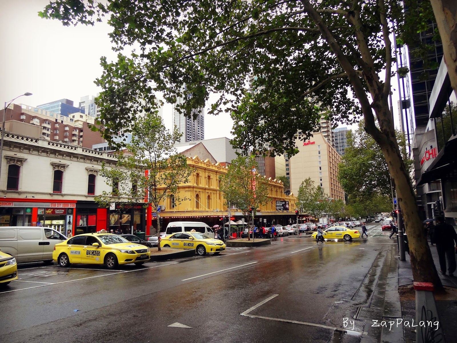 看看手表,时间已经差不多了,我们稍微整顿一下后便走到对面街的 Rydges Melbourne Hotel 等待一日游公司的接驳车。趁着旅游车还没到,我静下心来稍稍打量这一个城市。细雨后的 Exhibition St 显得格外清新,路上的车和行人都不多。秋天的天气正凉,对我们这些从赤道来的朋友来说,无论是没有一丝污染的空气,还是穿着厚毛衣在十几度的街道穿梭,都是很新鲜的体验。