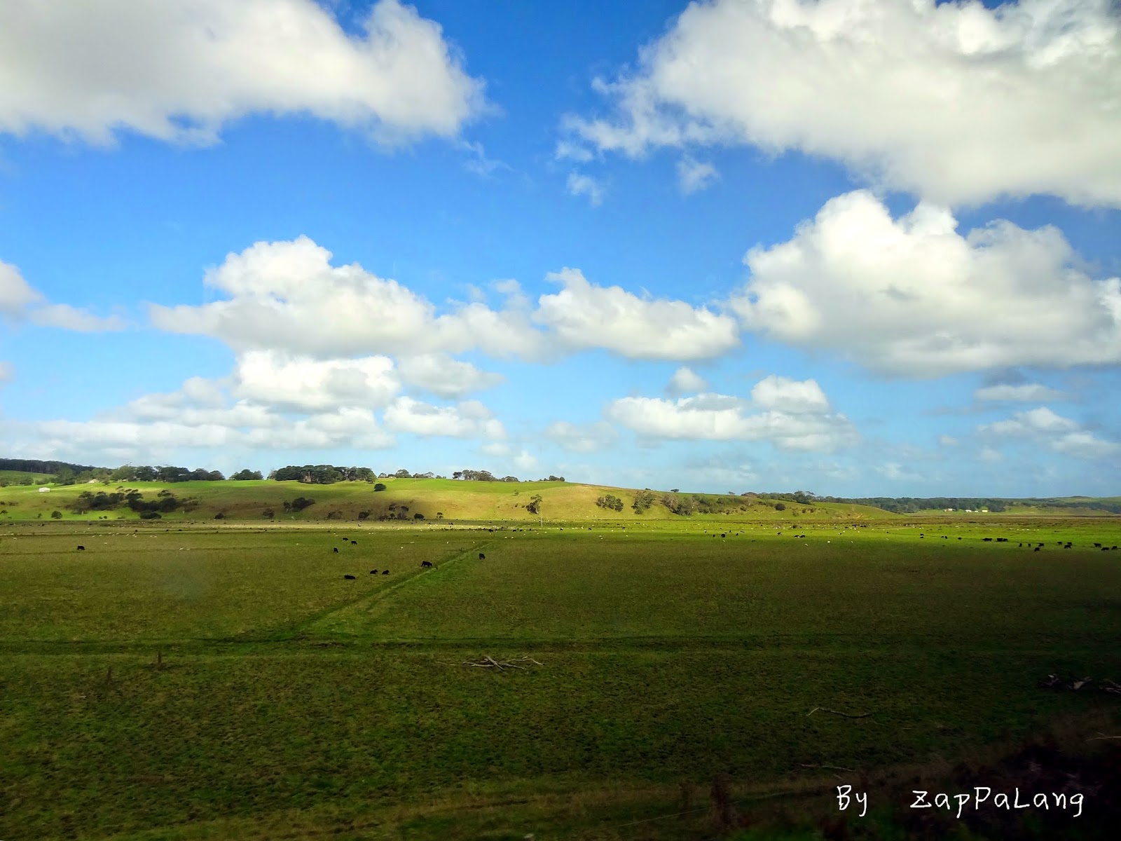 第一天的行程是到墨尔本东南部的 Phillip Island 看小企鹅,当中还包括了几个沿途会经过的景点。一路上小雨下下停停的,路旁的街景慢慢转换成郊外的草原,一望无际的大片草原上还偶尔会出现成群的牛羊,这种景色对于我这个城市人来说真的是美得像画一样,连眨一下眼睛都是奢侈。
