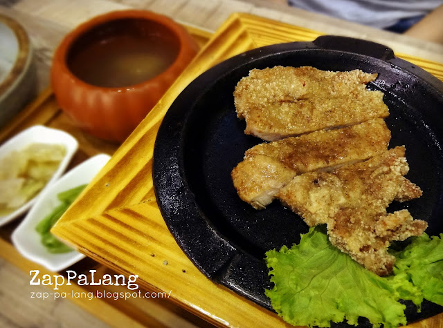 台式炸猪排套餐的猪排做得还不错,表面上的椒盐粉为它加分不少,不过就是份量少了点。一份猪排,一碗饭,两个配菜和一碗汤,整体不过不失,算是蛮安全的选择。