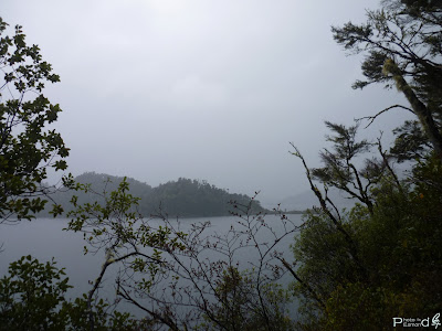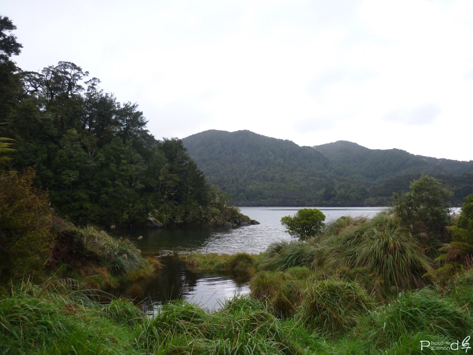 今天的天气不是太好,一眼望去都是乌云满天,偶尔走着走着还会下起纽西兰式的绵绵细雨。。。何为纽西兰式的绵绵细雨?这里的细雨真的是很细,很多时候我都没发现原来已经下雨了,都是看到外套湿了才发现。。。一路上都是穿过树林前进,偶尔还会经过湖边哦!