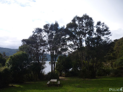 看过了瀑布,我继续沿着步道前进。今天的步道景色仍然以树林和湖为主,除此之外也多了许多木桥和吊桥。说真的,我来纽西兰的九个月,走的吊桥比我之前在大马都来的多。中途经过一个属于私人的屋子,相信这些屋子应该是他们的度假屋吧,几时我也可以在这样的环境有一间度假屋,偶尔驾船进来这里渡假啊???哈哈,发梦没那么早,还是专心赶路吧!!!