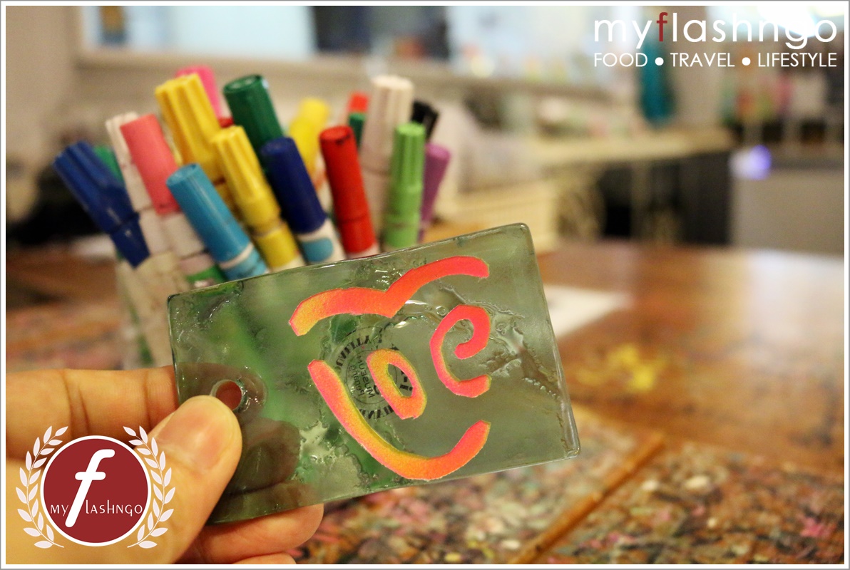 “玻礼” 其实是一面面积大约 3” x 2” 的玻璃片,可让游客 (成人) 在玻璃片上 ✔ 亲自刻下名字或图形,把完成后的半成品交给工作人员拿进去工作室进行磨砂的程序。至于 ✔小孩子们则可在玻璃片上绘画,发挥创意,我相信小孩子们会玩得不亦乐乎,成品亦也非常有纪念的价值。