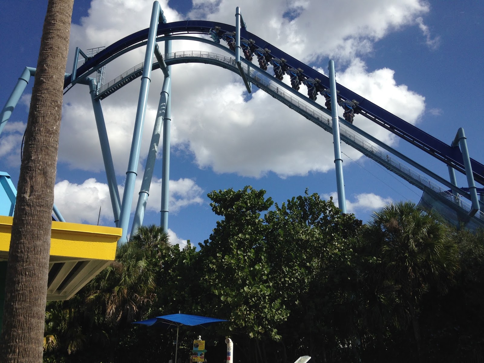 我对高度有少许的恐惧,抱着凡事必试的心态,我还是跟随HJ, Jeff 坐上了云霄飞车 Kraken 与Manta。