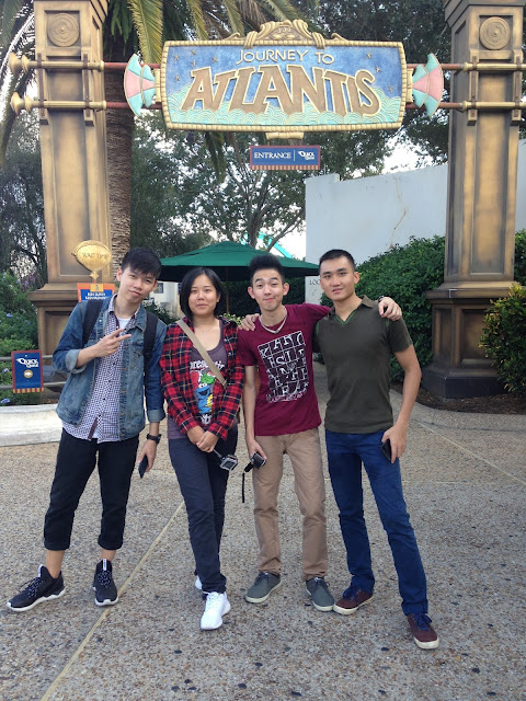 然后我们也尝试了 Journal to Atlantis 水上过山车,这是LiSin 工作的部门,就在我家的Penguin 隔壁。