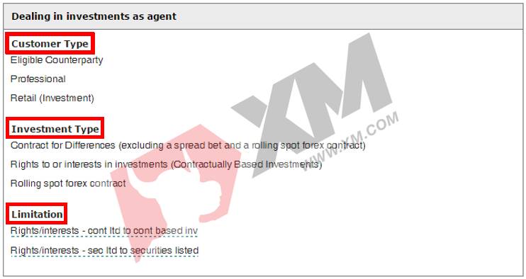有图有真相,下面就让我们以“XM外汇平台”为例来具体分析一家英国正规交易商的监管细则。(以下所有截图均源自XM FCA牌照官网查询结果)