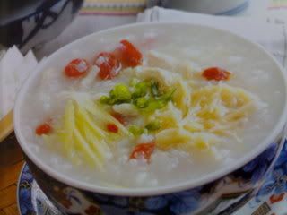 再下鸡丝 ,姜丝及枸杞煮滚 .