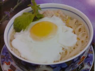 2)面线以滚水川烫过 ,捞起沥干水分 ,家人上述汤中煮滚