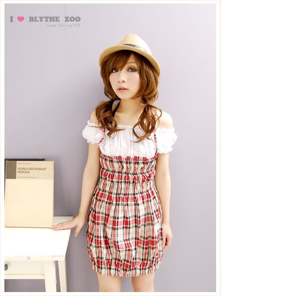 日系QQ格子小洋装, 适合S-Lsize , 黑色黑低,红色,黑色白低,米色,青色   |