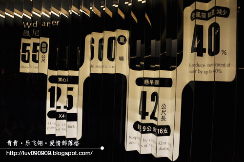 在墙壁上也有写着这个地阻尼器的基本资料,而且台北101还把这个地阻尼器设计成四种娃娃(Damper Baby),分别是红进宝、金有钱、银丝卷和黑巧克,好可爱~^^