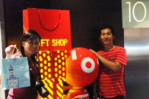 精品店的门口也放着Damper Baby的商品,看来是101大楼最得意的作品和最抢手的精品了吧?所以我和老公就分别买了金有钱(NTD 250)和银丝卷(NTD 250)摆设品,外加一个红进宝(NTD 150)作纪念~